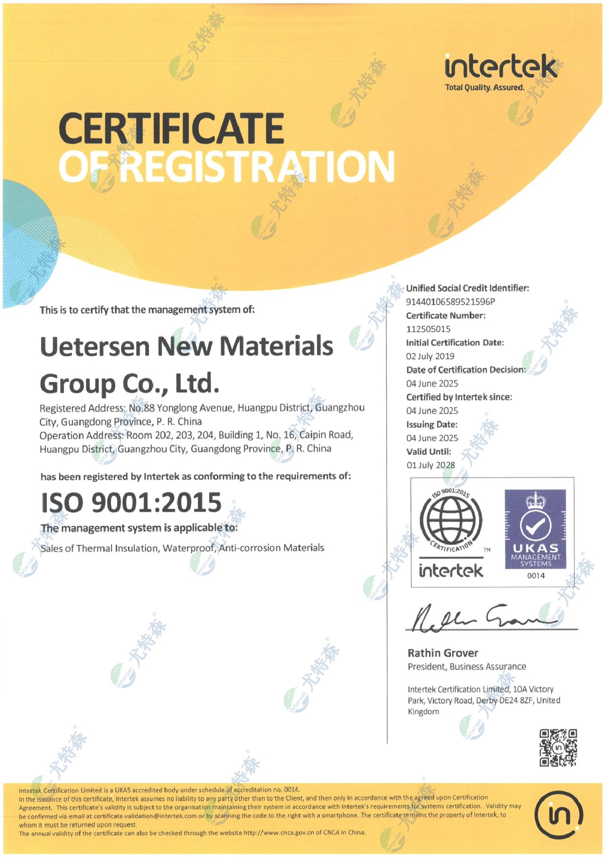 尤特森新材料集團有限公司是一家集保溫材料及復合材料的研發、生產和銷售為一體的綜合型企業,旗下擁有UETERSEN尤特森和UK尤科新材等多個品牌。